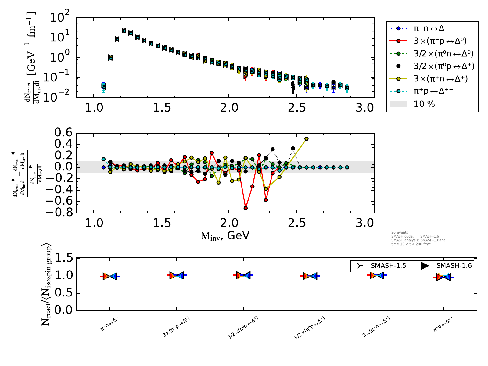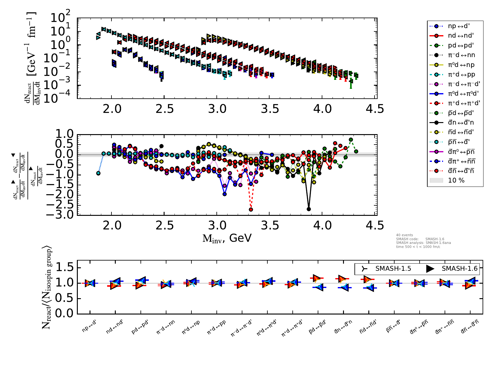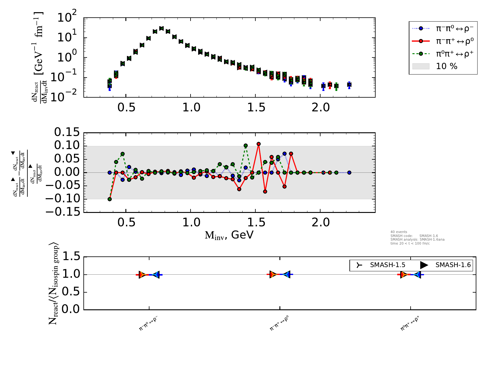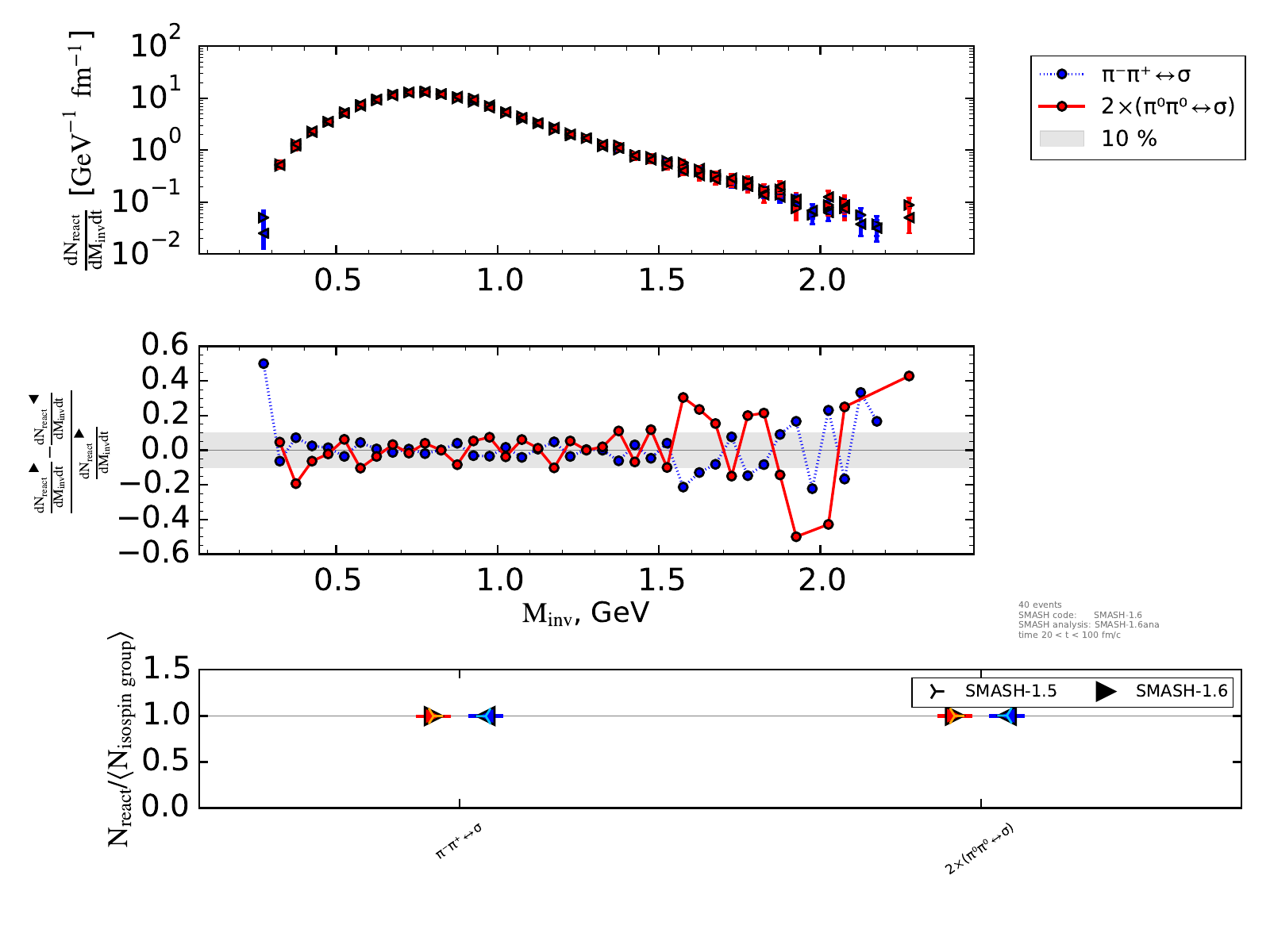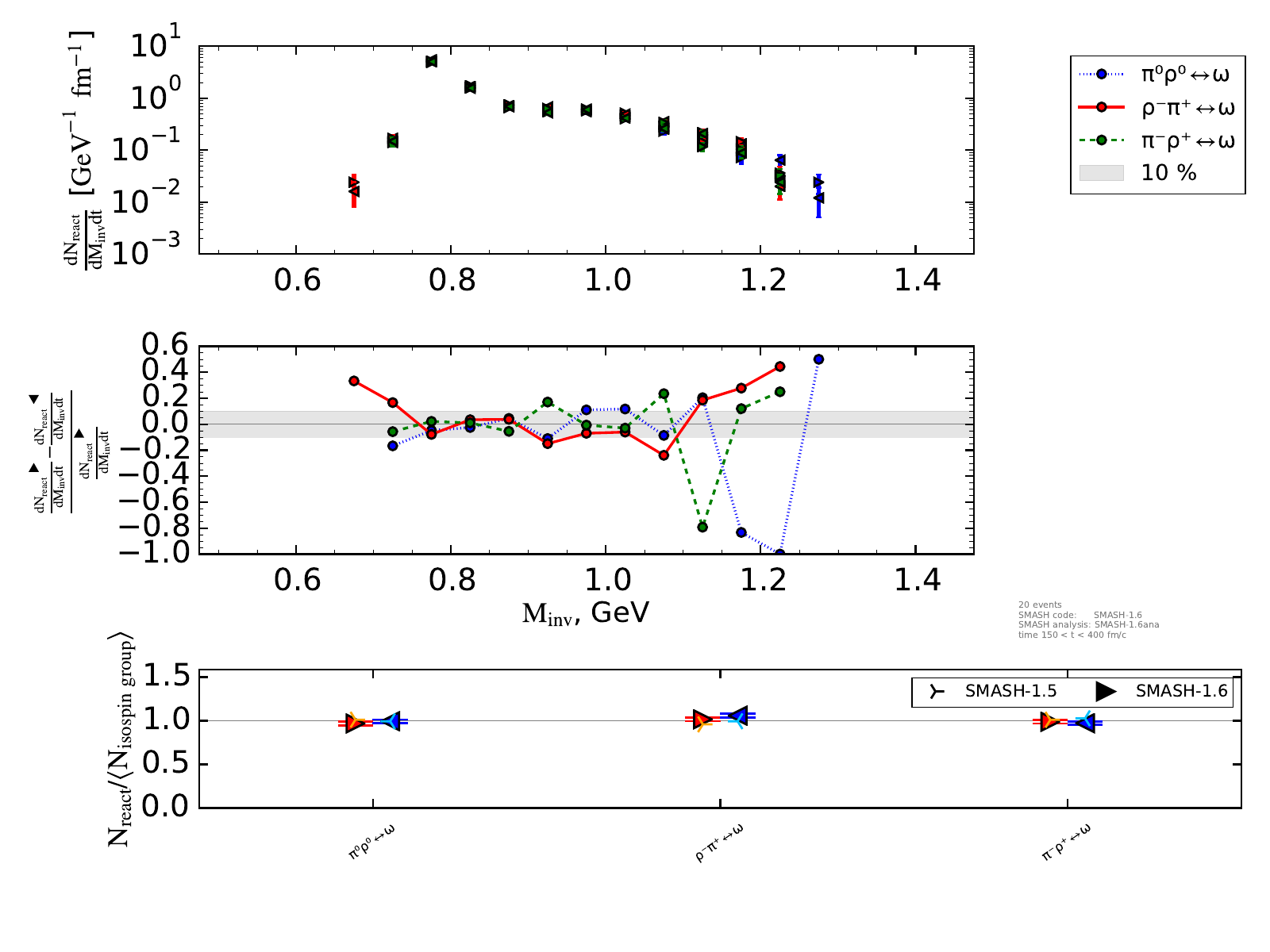 The upper plot on the right shows the number of reactions binned in invariant mass and normalized by the length of the timestep (endtime - onset of equilibrium).