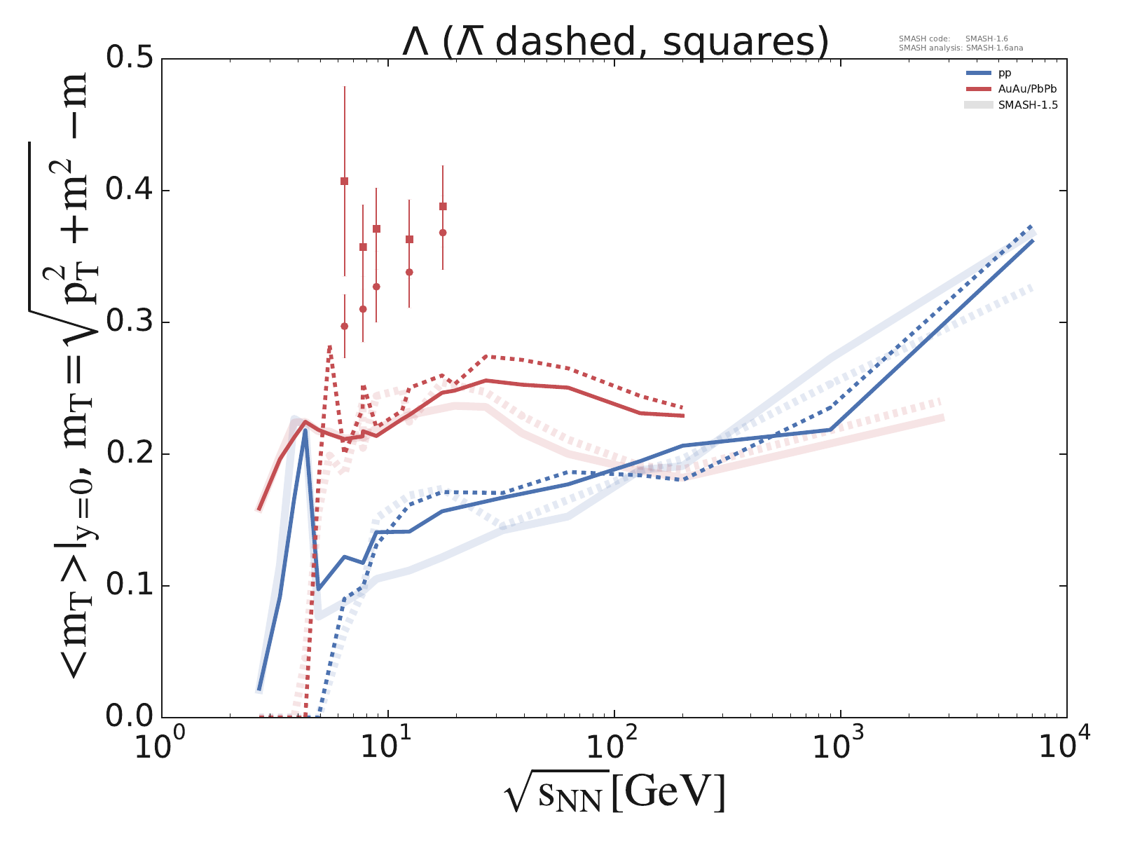 Note: Peak in the region of √sNN ≈ 4 - 6 GeV is due to uncertainties in the transition from resonances to strings. Note: The Σ0 contribution is currently not accounted for in the Λ spectra.