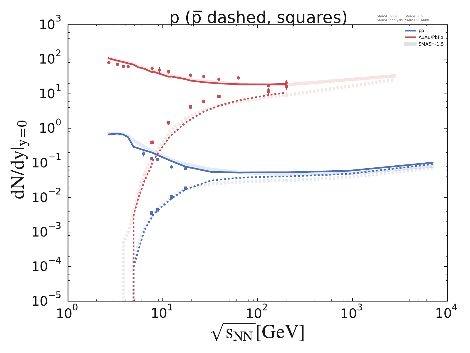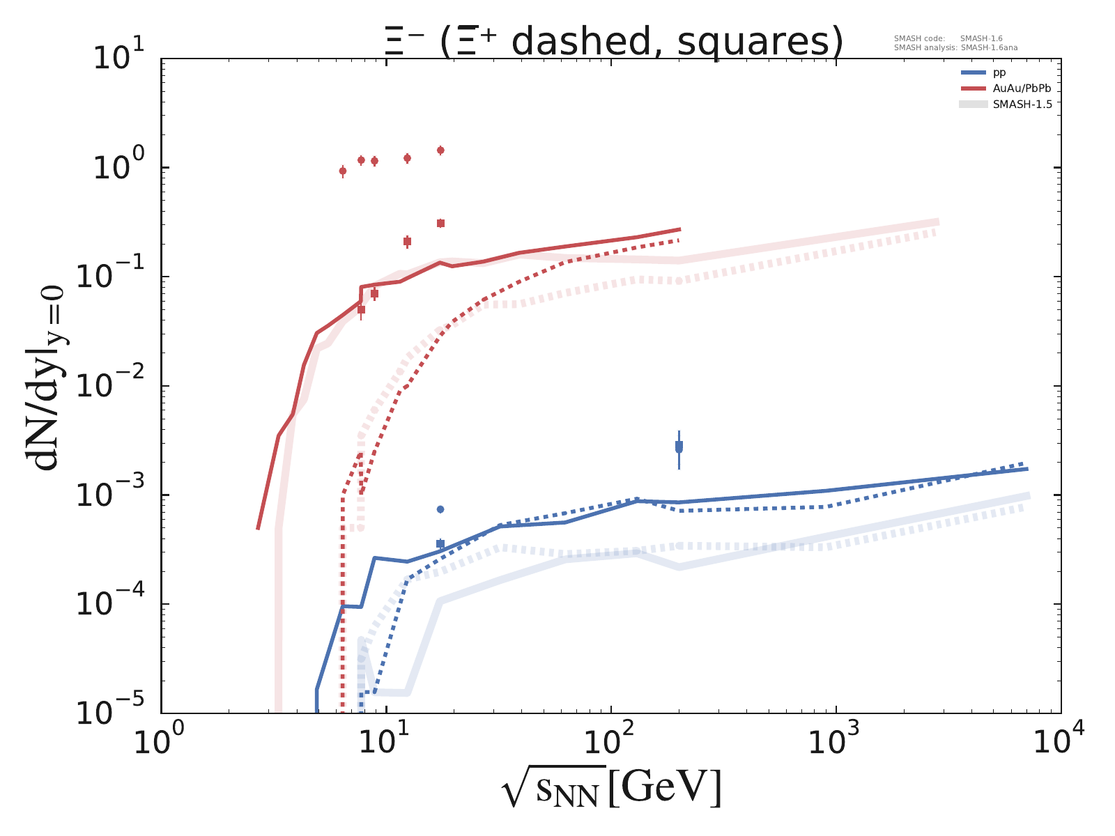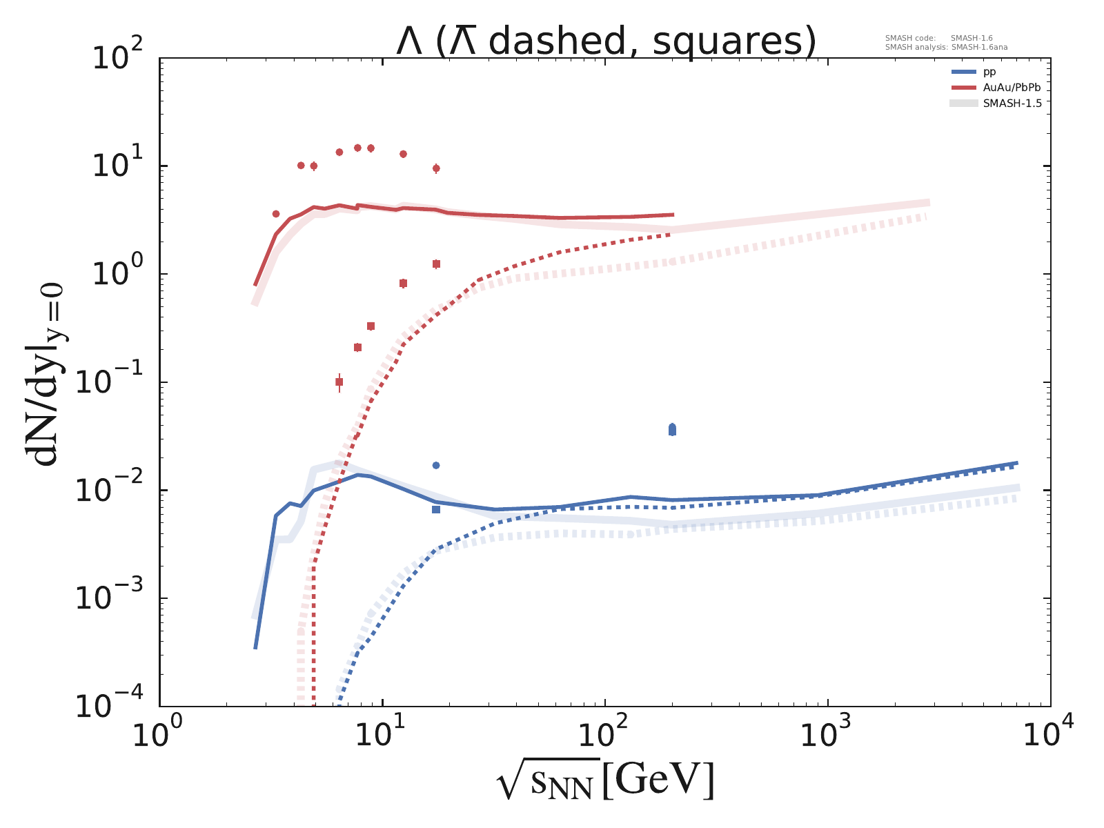 Note: Kink in the region of √sNN ≈ 4 - 6 GeV is due to uncertainties in the transition from resonances to strings. Note: The Σ0 contribution is currently not accounted for in the Λ spectra.
