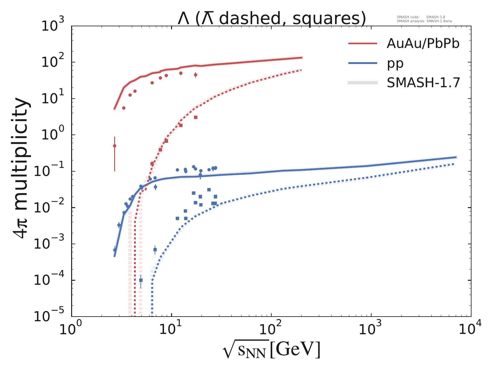 Note: Σ0 contribution is added to Λ in AuAu and PbPb collisions.