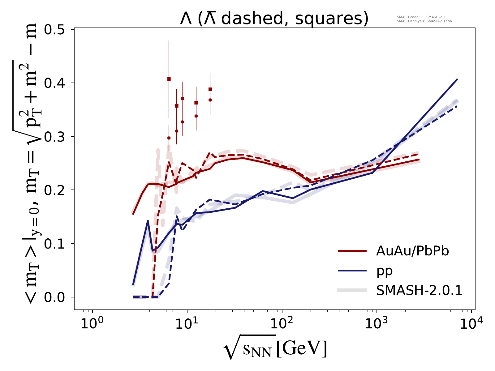 Note: Peak in the region of √sNN ≈ 3 - 5 GeV is due to uncertainties in the transition from resonances to strings.