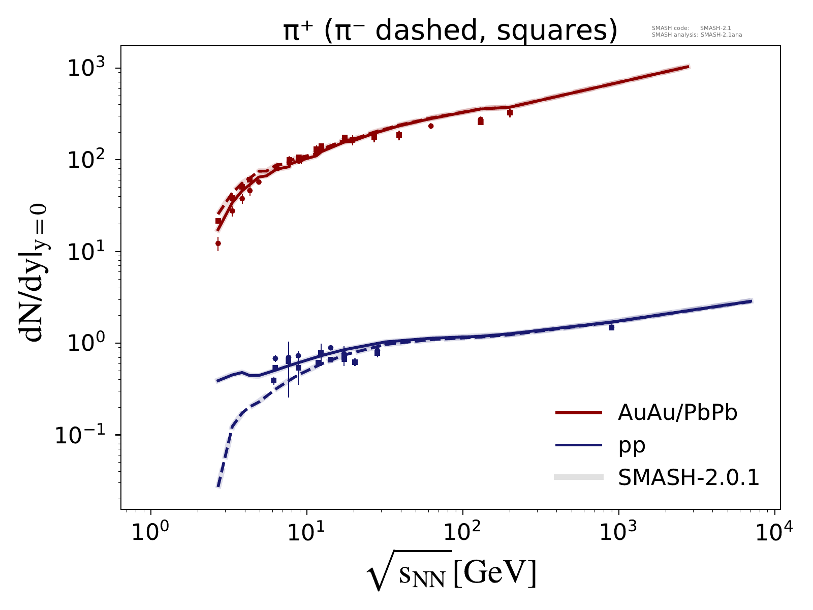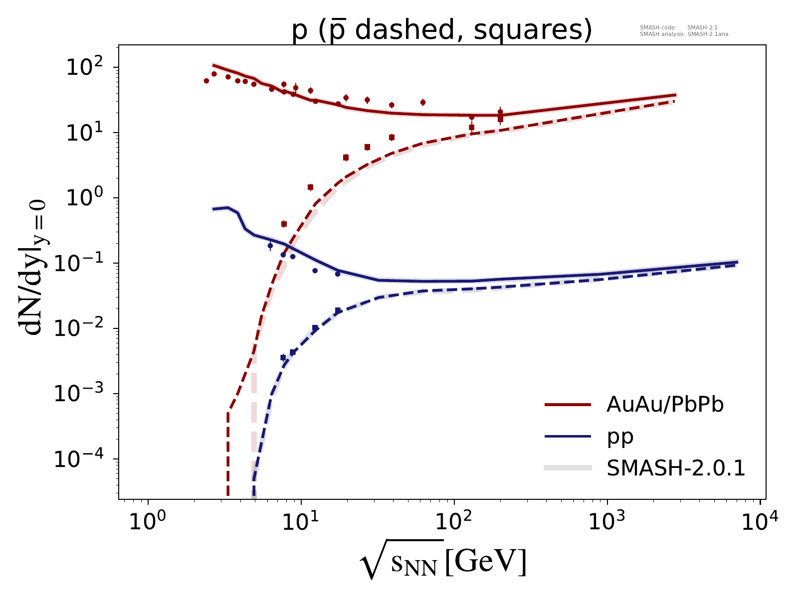 Note: Kink in the region of √sNN ≈ 3 - 5 GeV is due to uncertainties in the transition from resonances to strings.