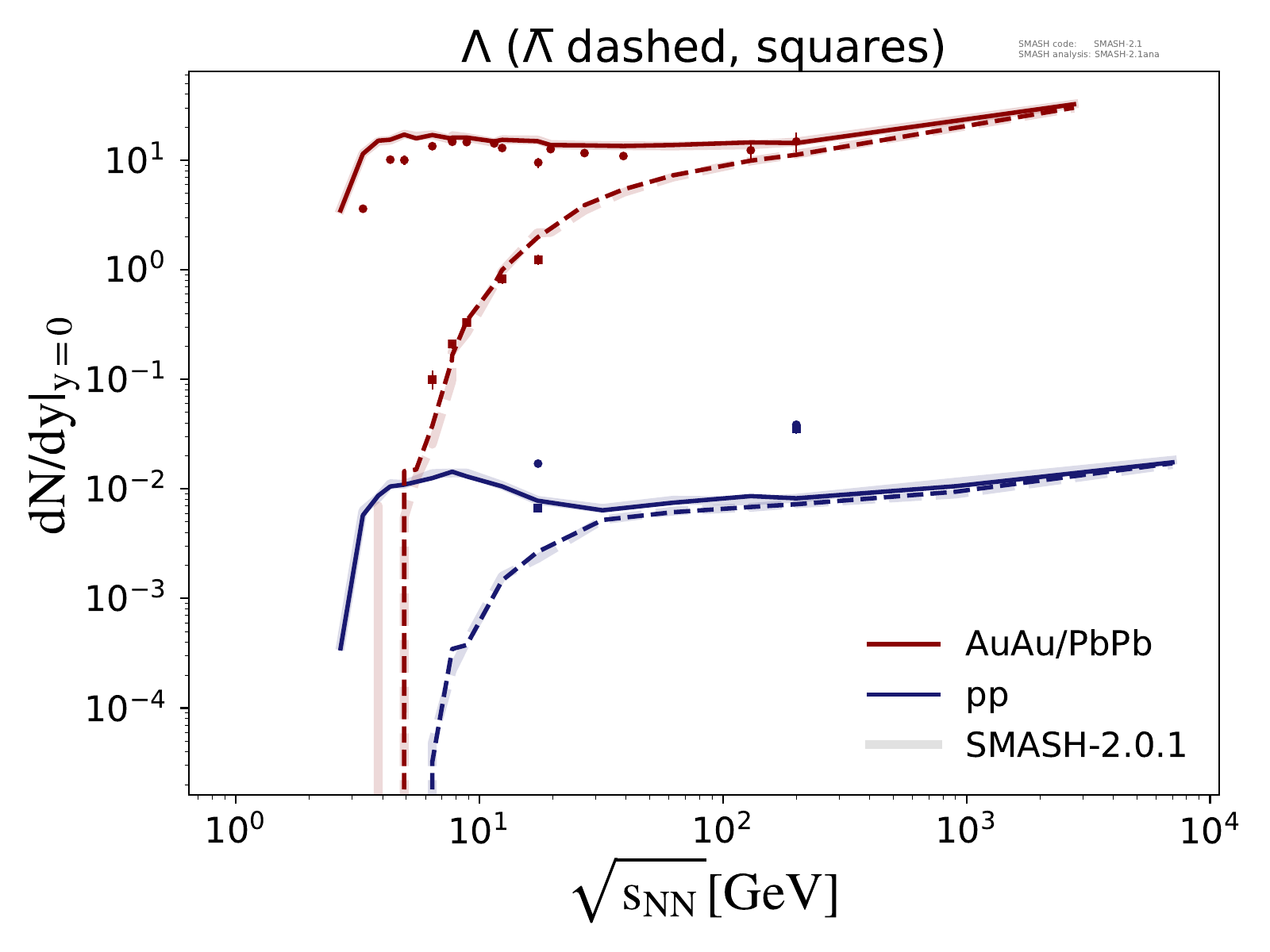 Note: Σ0 contribution is added to Λ in AuAu and PbPb collisions.