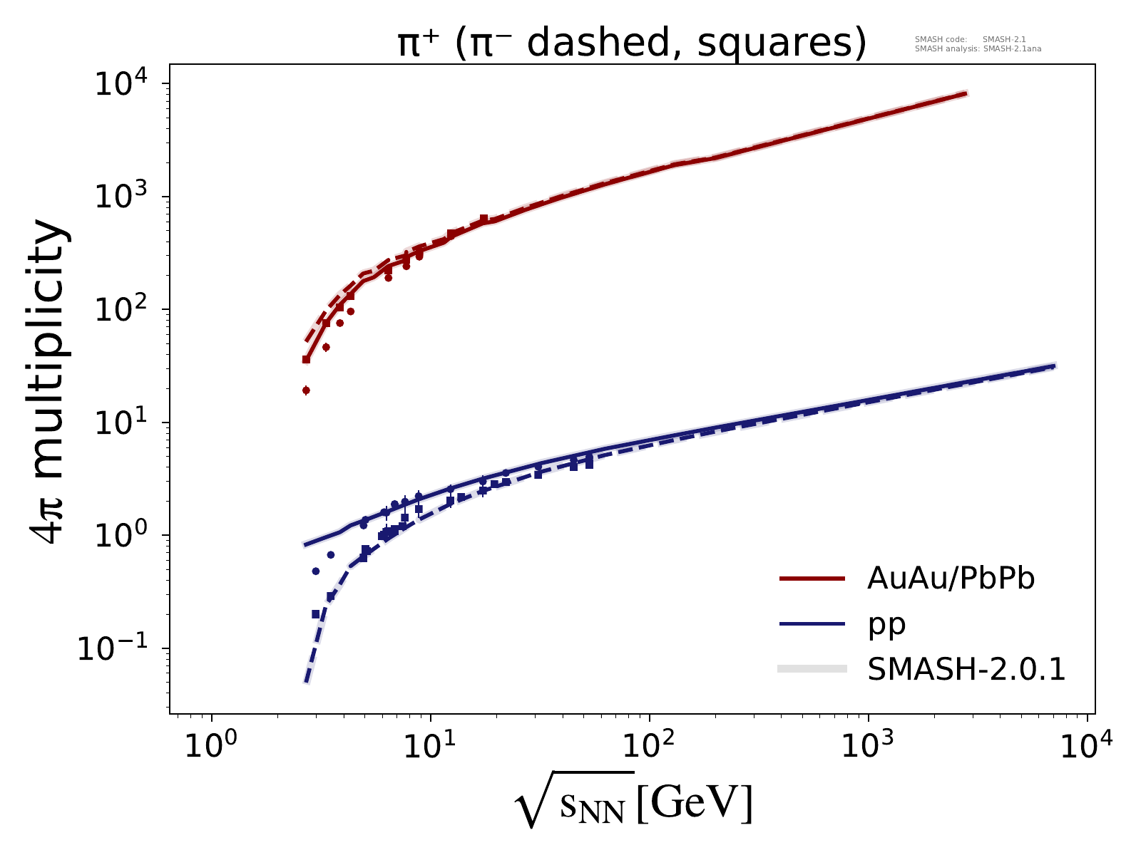 Comments: Pion multiplicities at low energies known to deviate. For π+ in pp caused by the overshoot in the inclusive pp cross section for π+ production (see cross section pp plots).