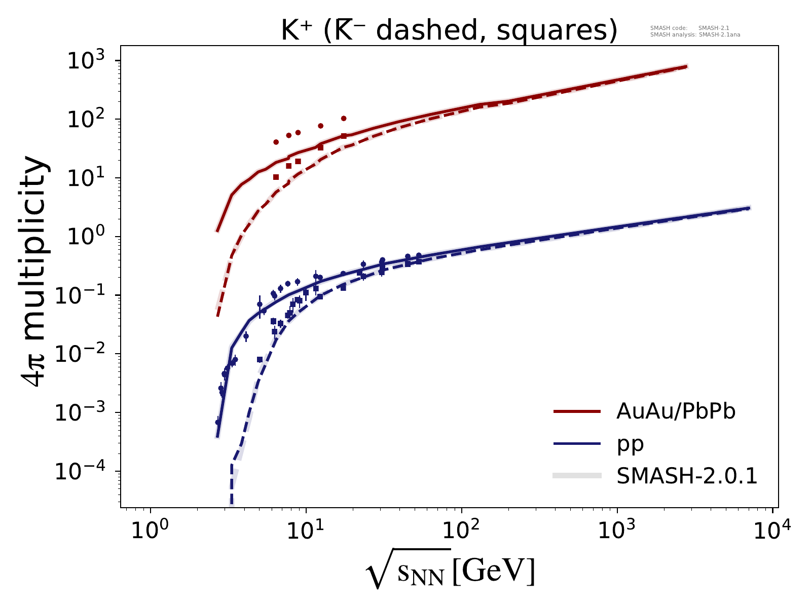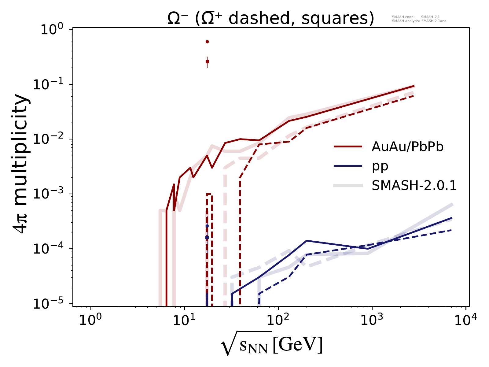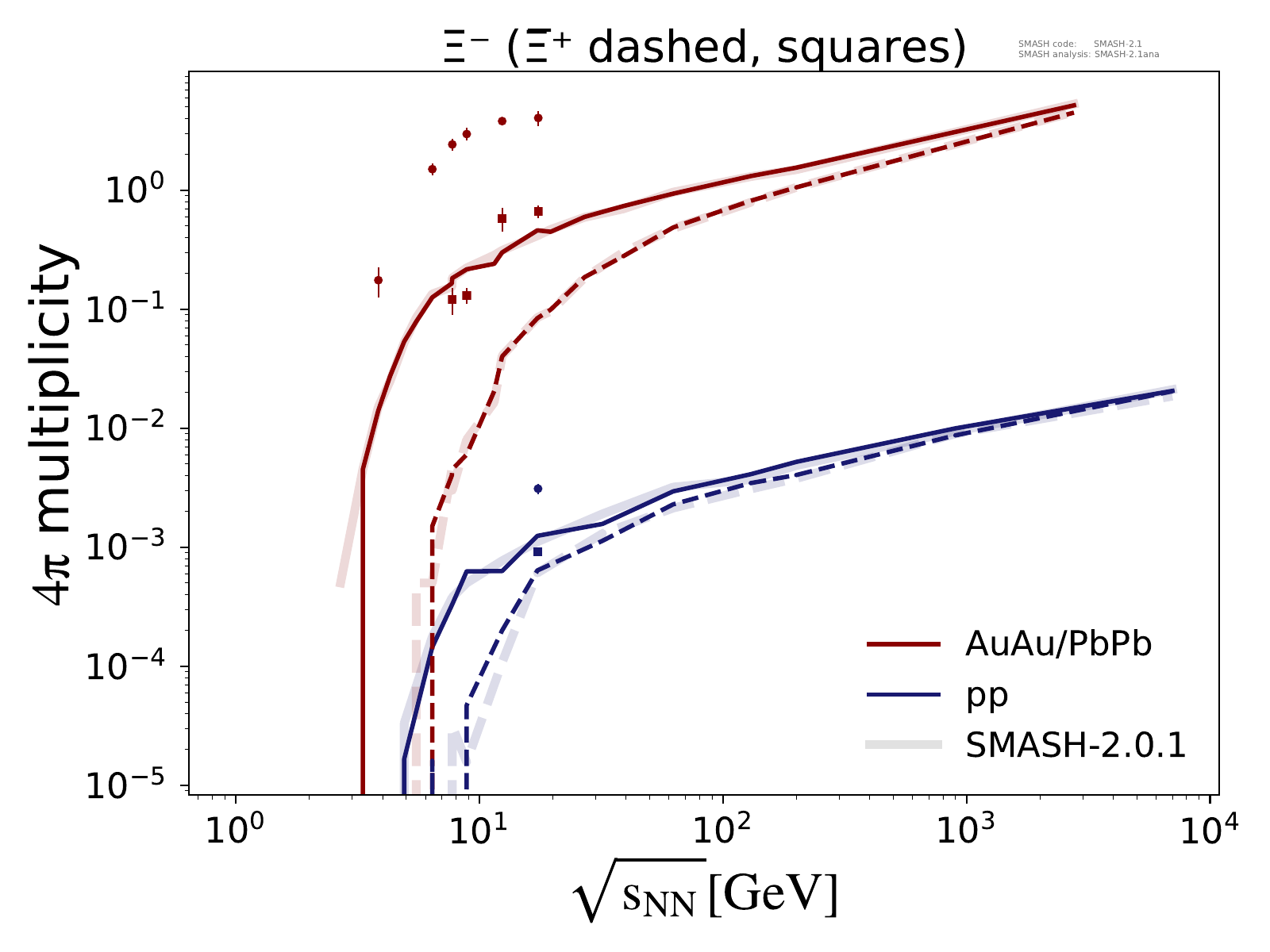 Note: Kink in the region of √sNN ≈ 3 - 5 GeV is due to uncertainties in the transition from resonances to strings. Note: Σ0 contribution is added to Λ in AuAu and PbPb collisions.