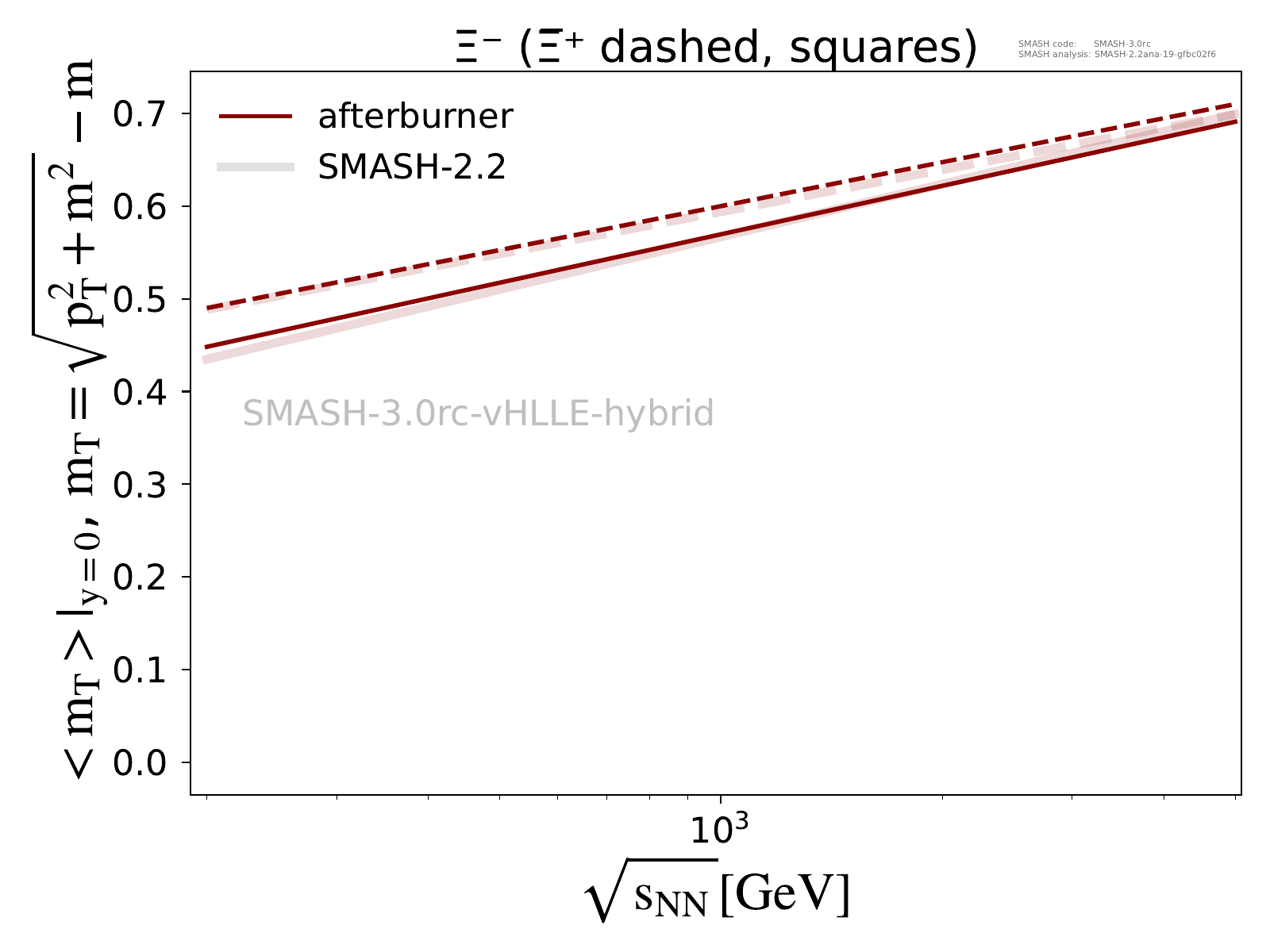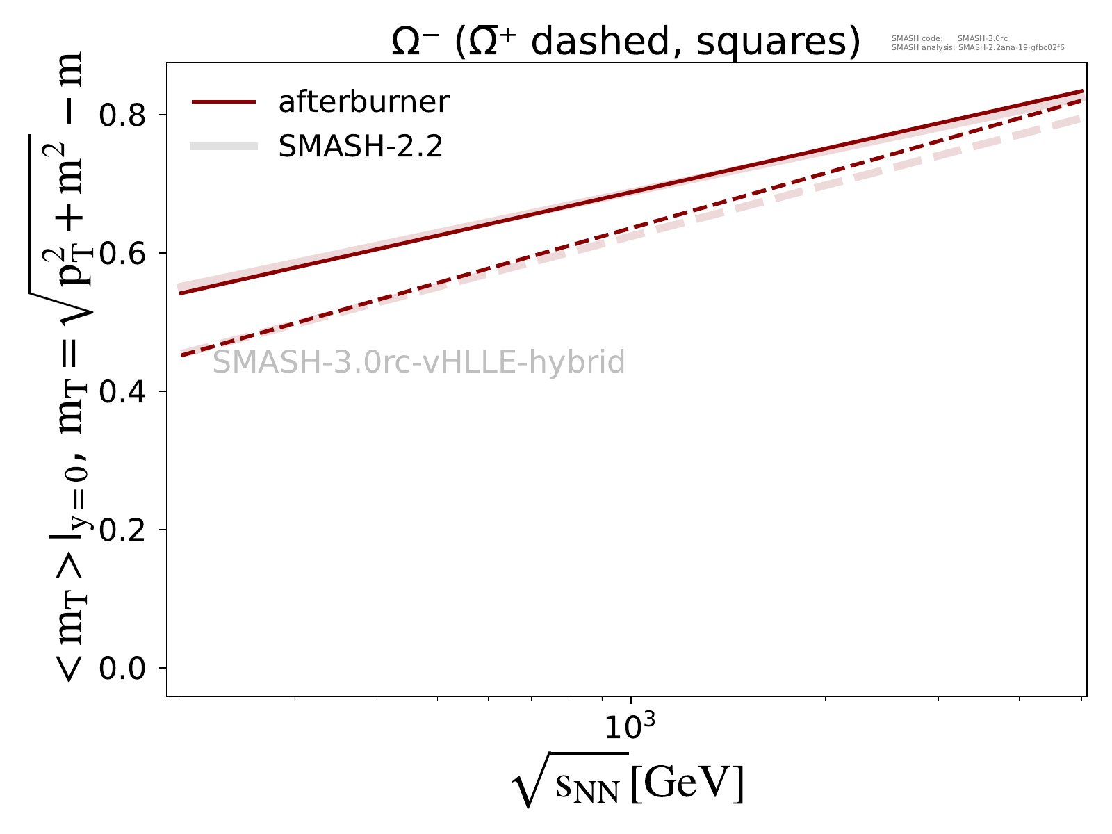 Mean transverse mass at midrapidity for π, K, P, Λ, Ξ and Ω multiplets as a function of center-of-mass energy in pp and AuAu/PbPb collisions.