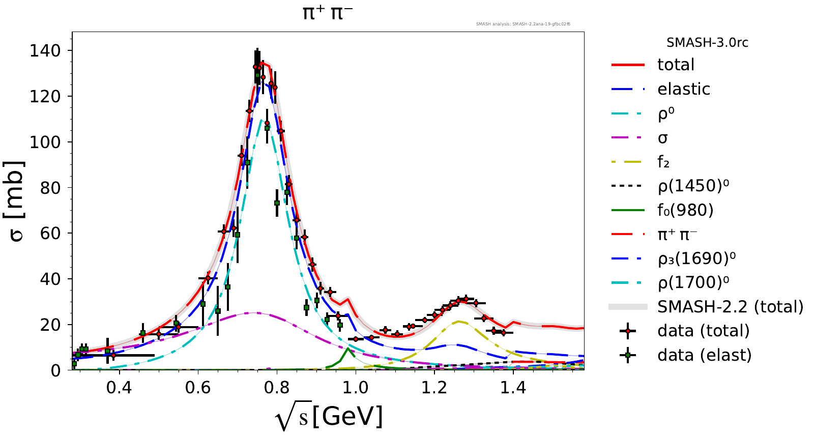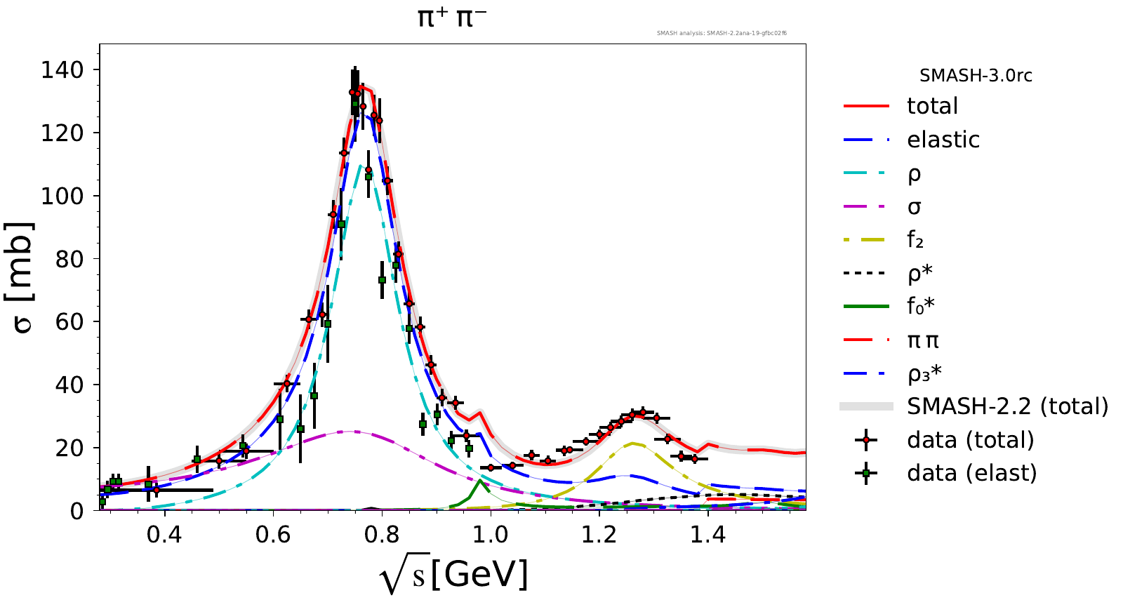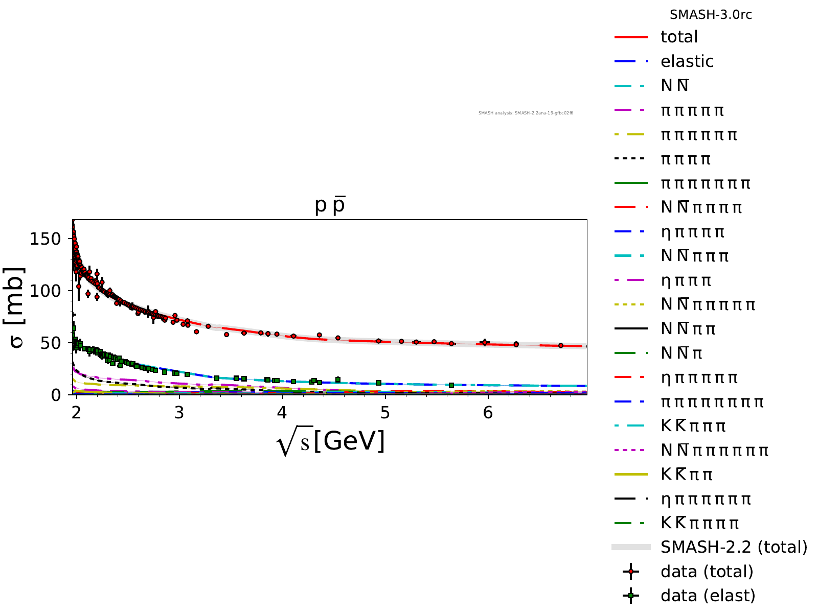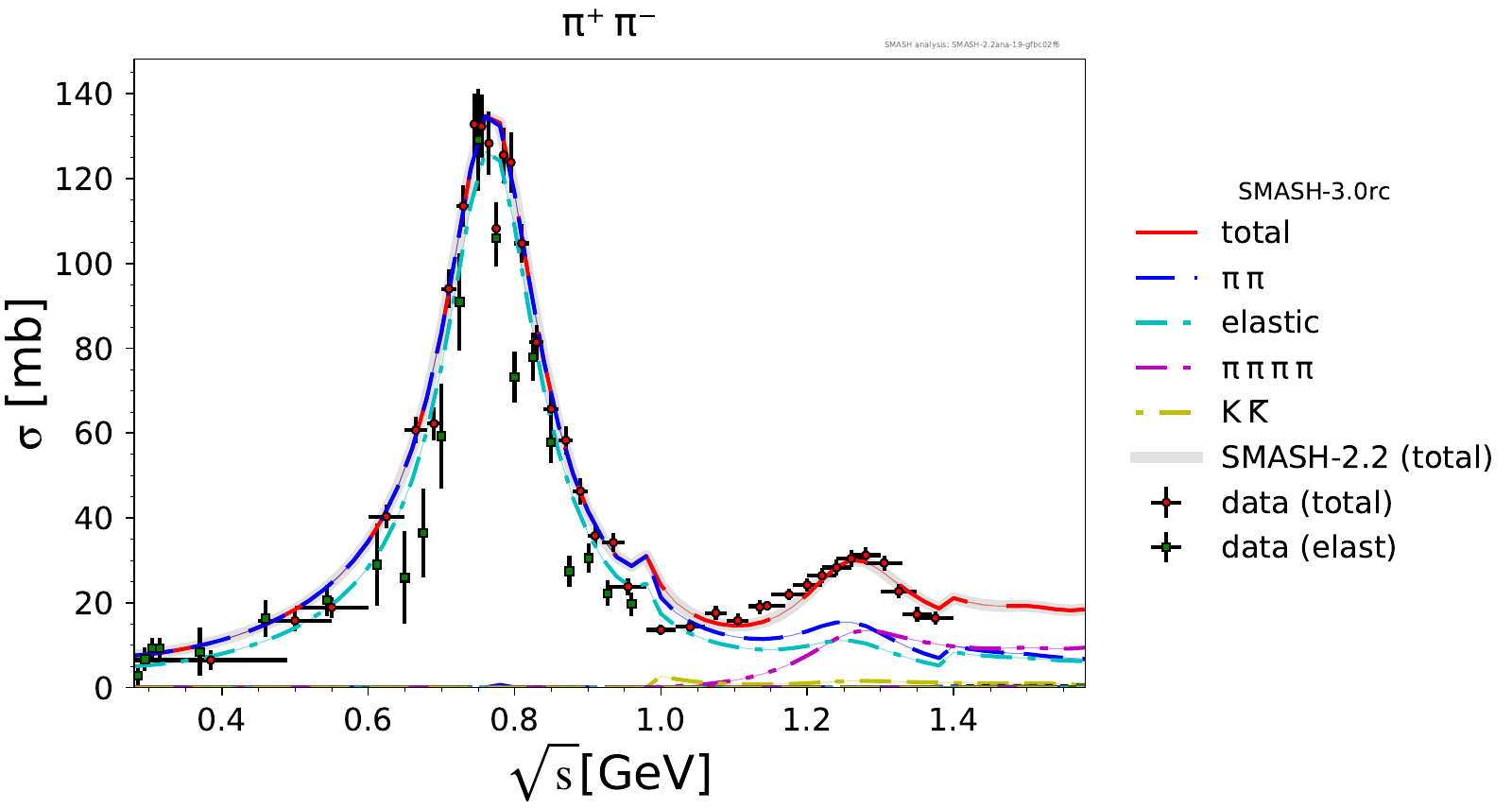 Comments: Lambda(1520) peak could be higher, but it is tightly constrained by PDG branching ratios. At high energies, there are no resonances.