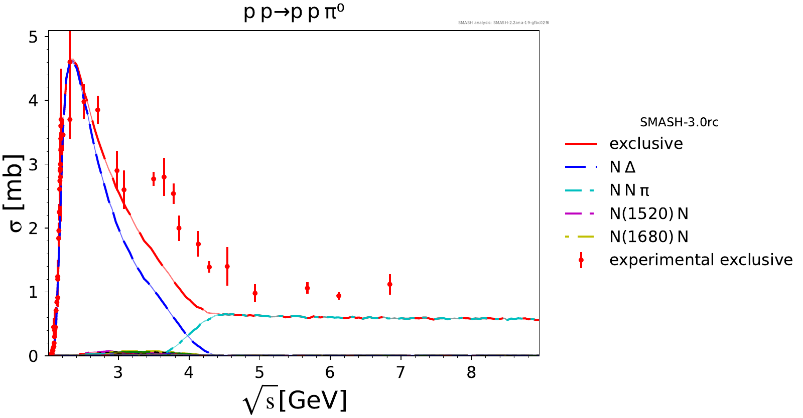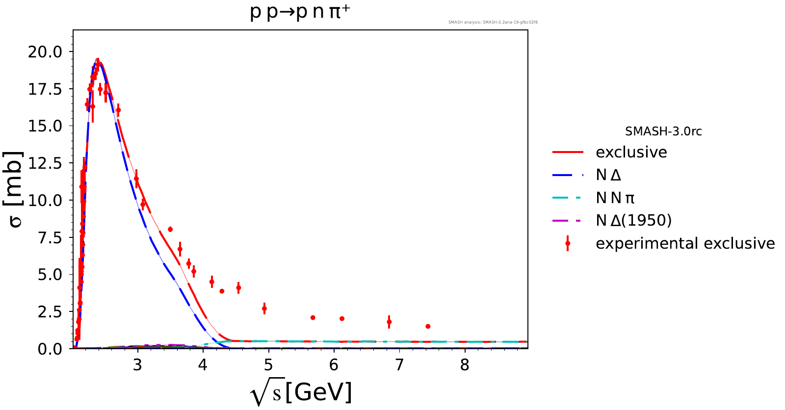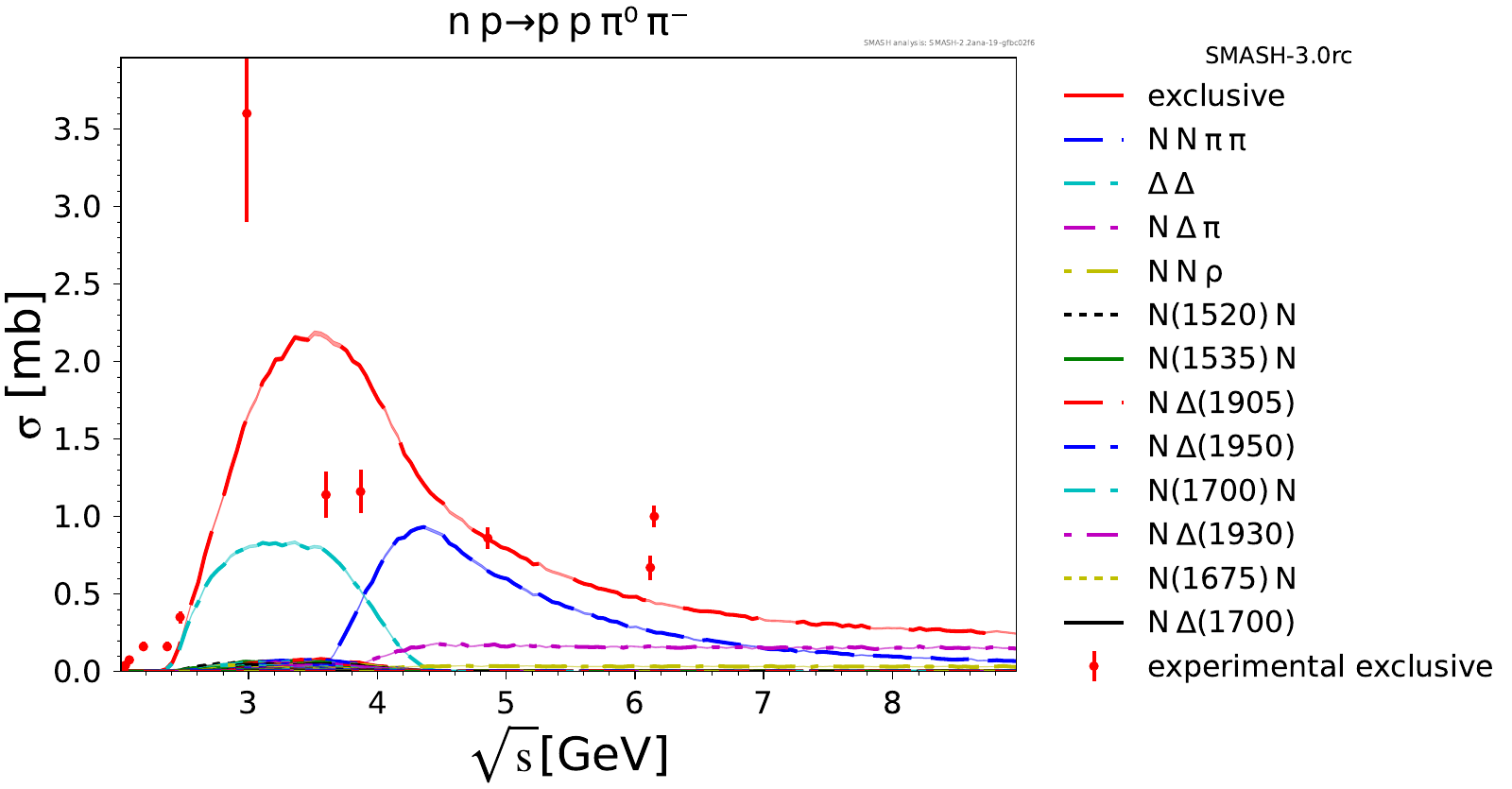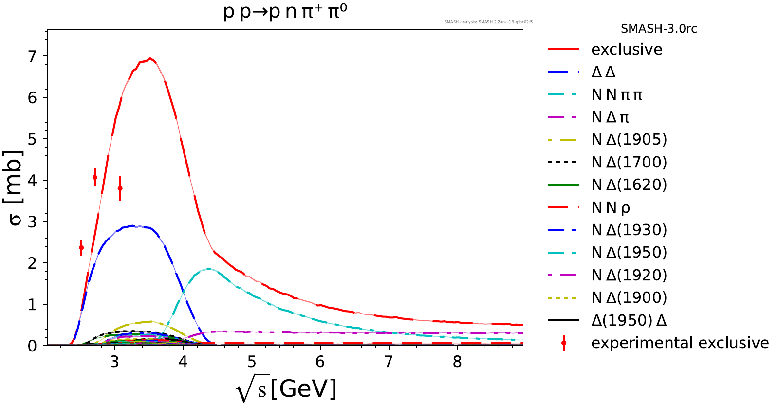 Comments: Exclusive Deltas are overestimated at high energies, probably because we don't produce enough pions.