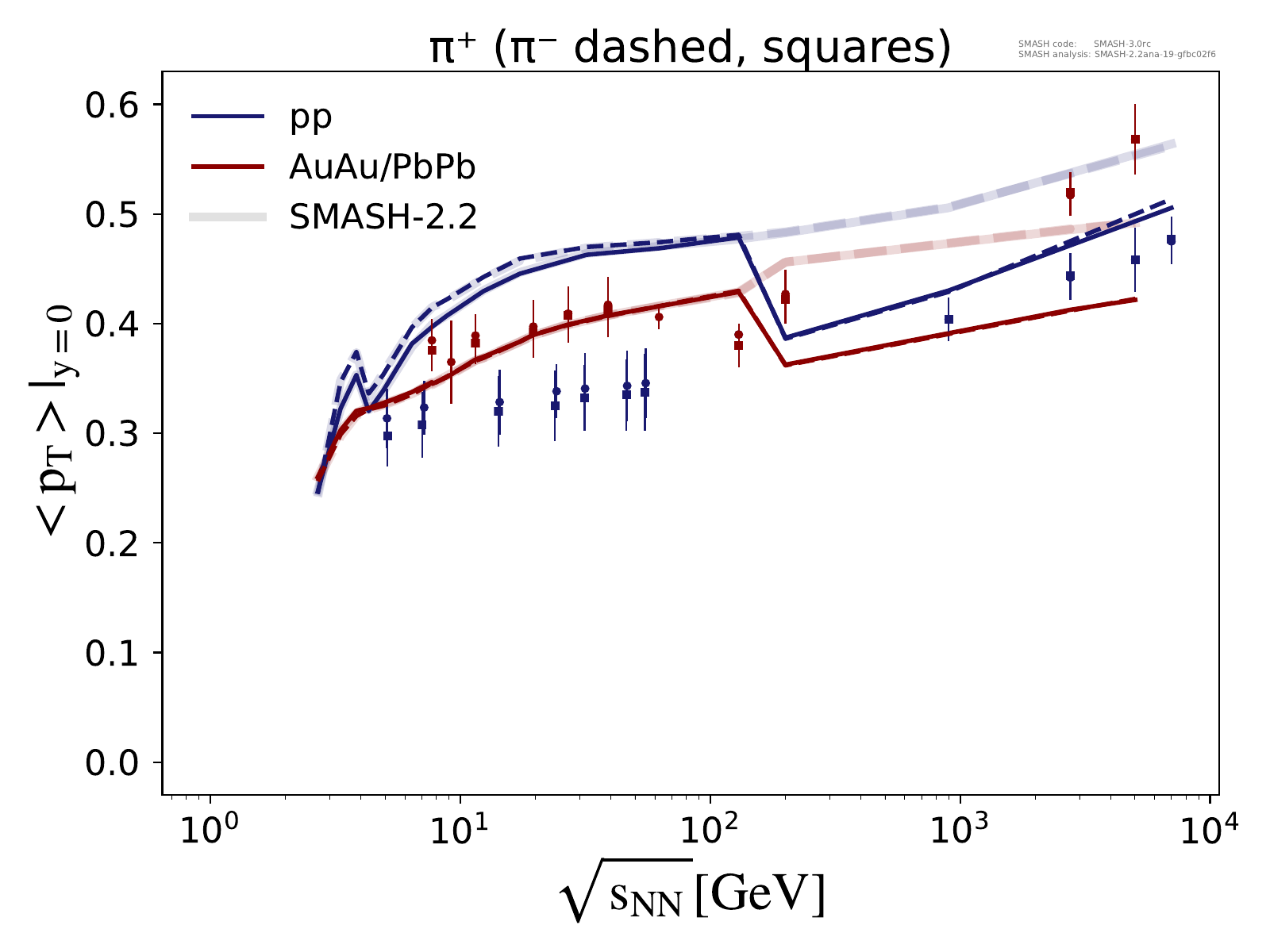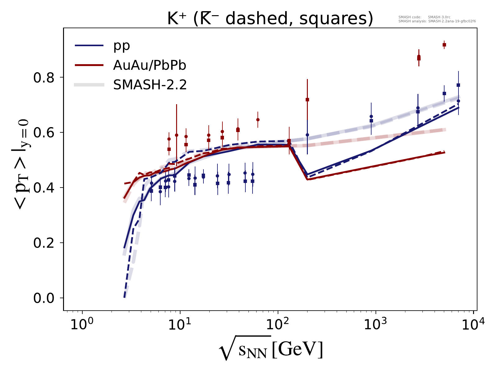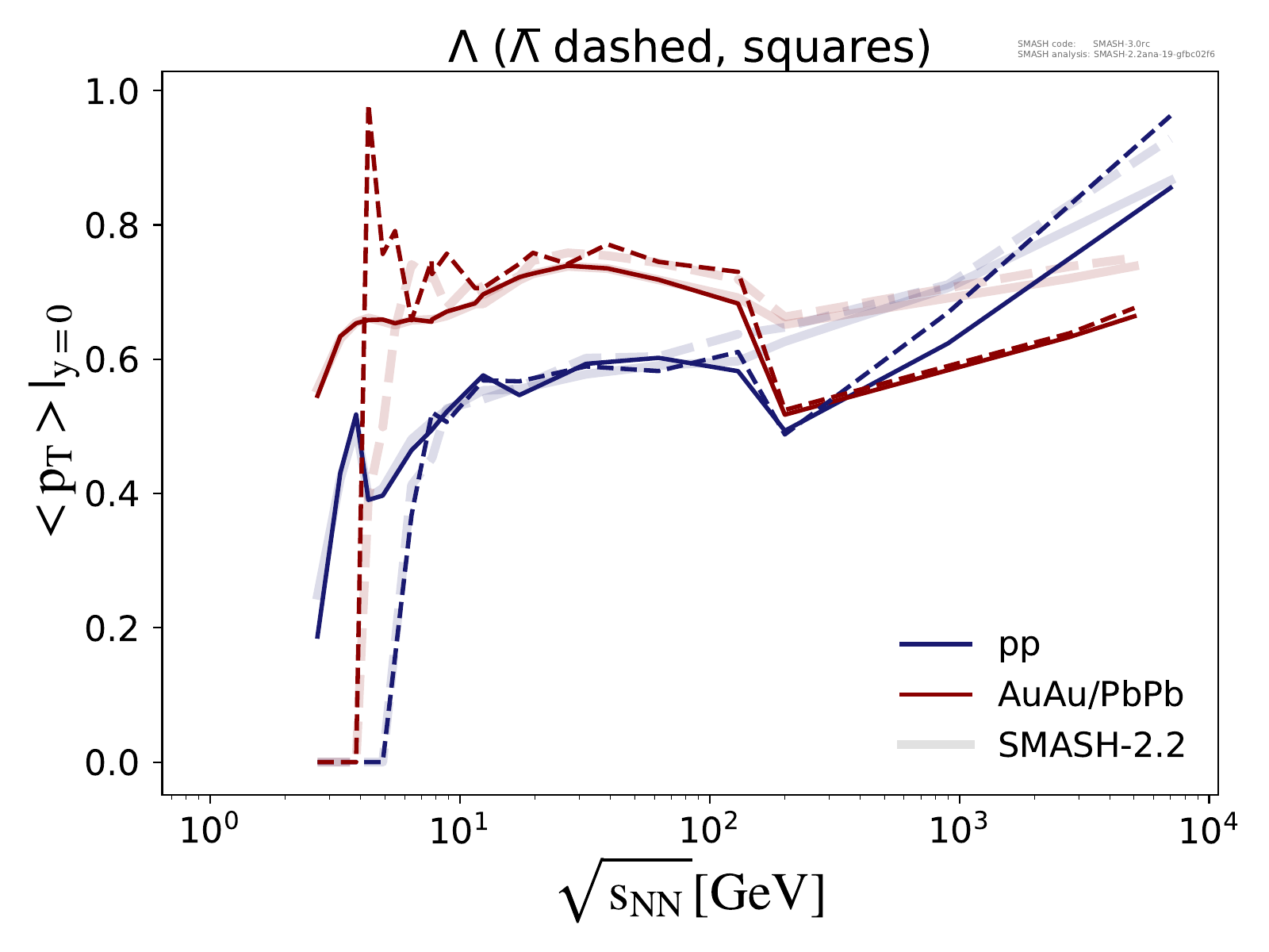 Note: Peak in the region of √sNN ≈ 3 - 5 GeV is due to uncertainties in the transition from resonances to strings.