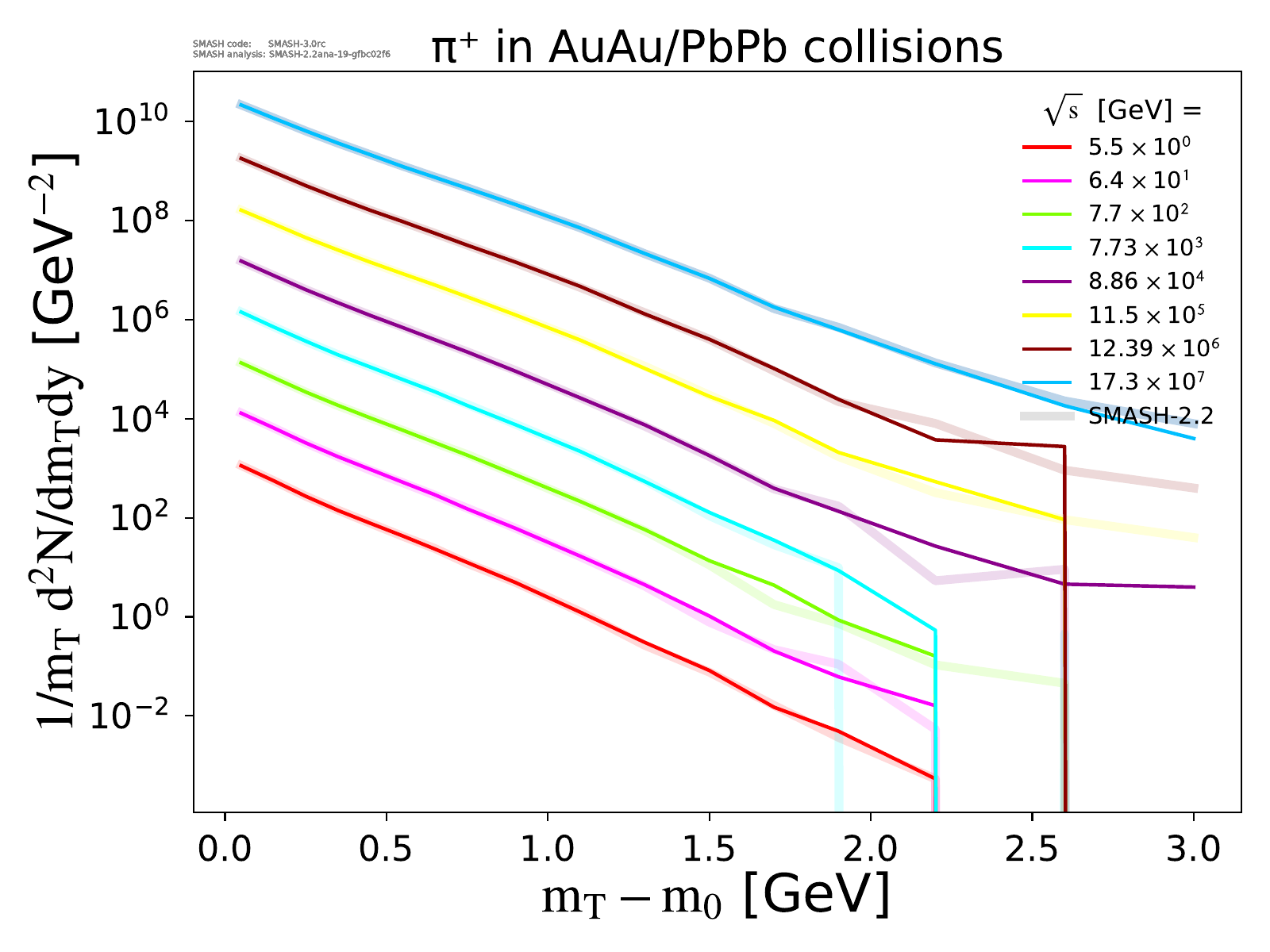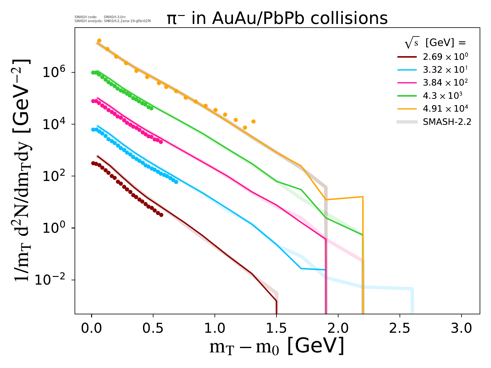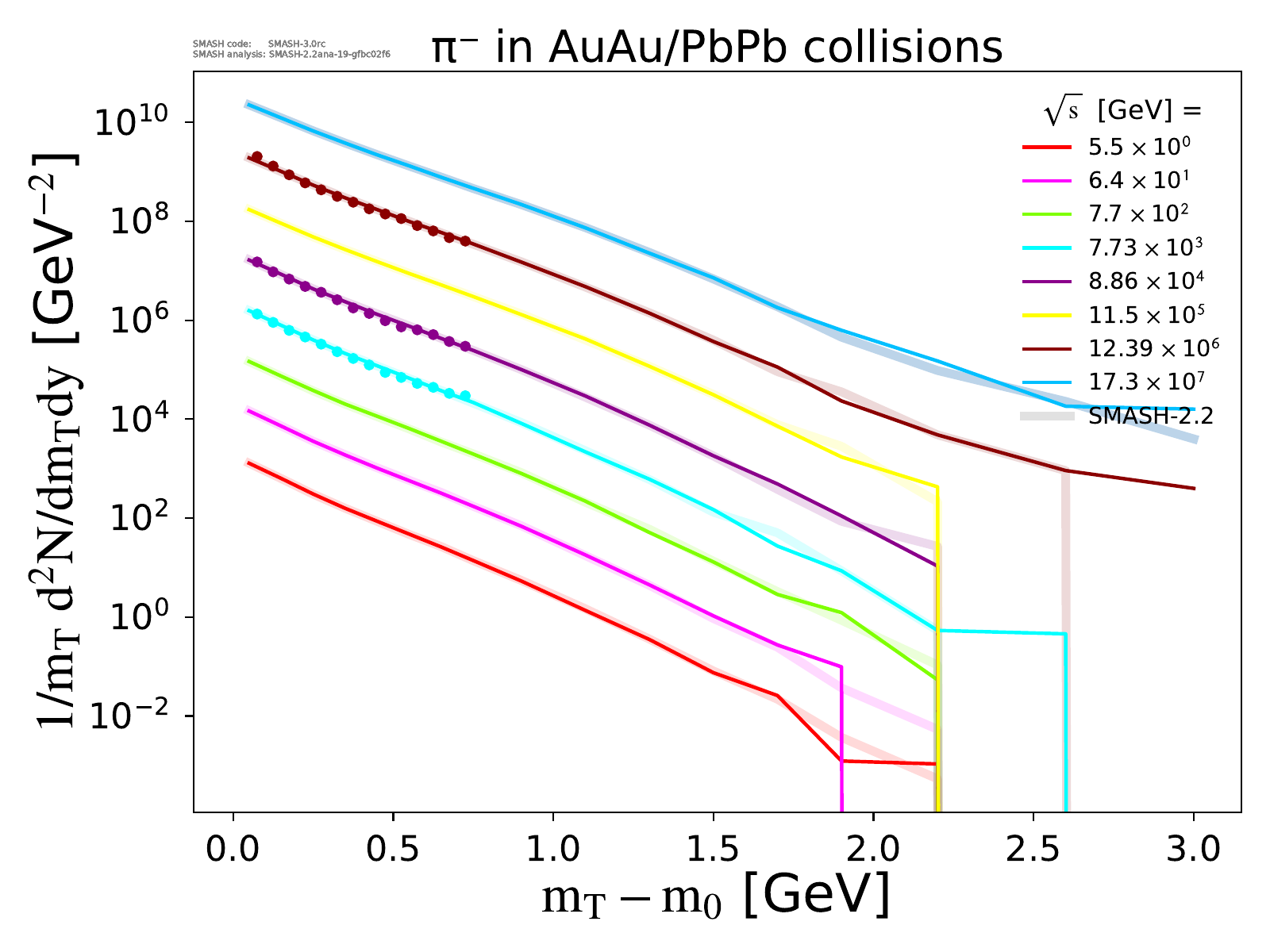 Transverse mass spectra for π, K, P, Λ, Ξ and Ω multiplets at AGS, SPS and RHIC/LHC energies.