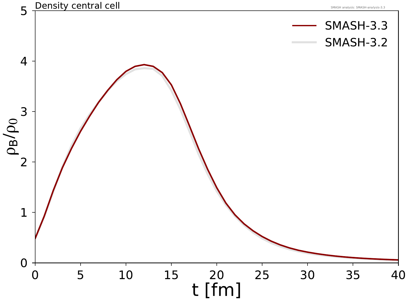 Time evolution of the baryon density in the central cell of a Au + Au collision and of the particle density in infinite matter simulations (box) for different degrees of freedom.