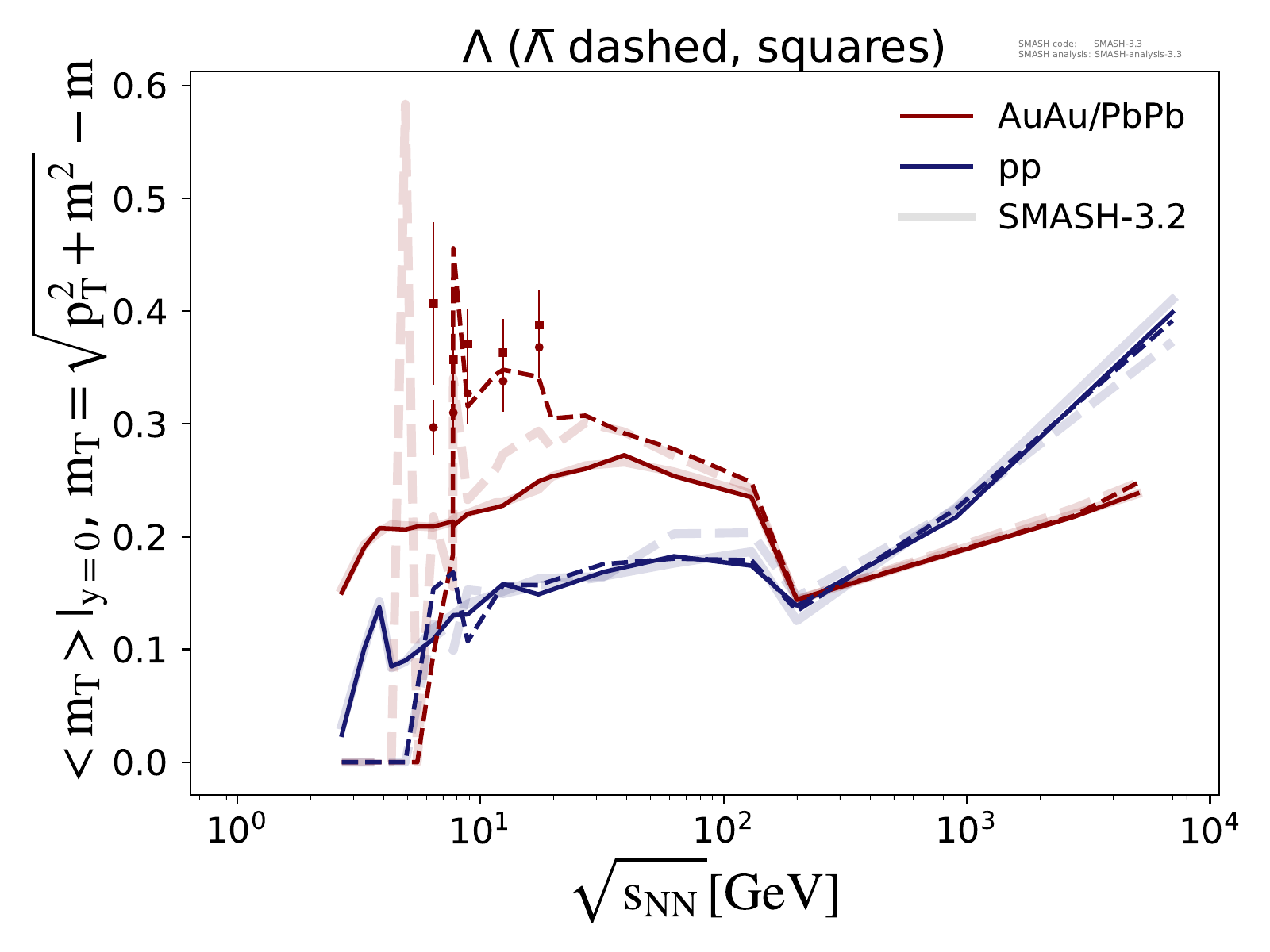 Note: Peak in the region of √sNN ≈ 3 - 5 GeV is due to uncertainties in the transition from resonances to strings.