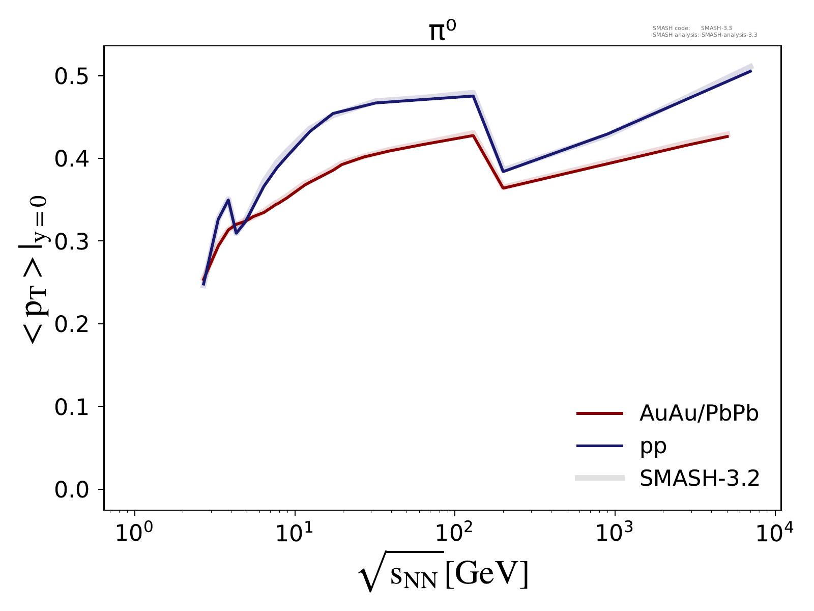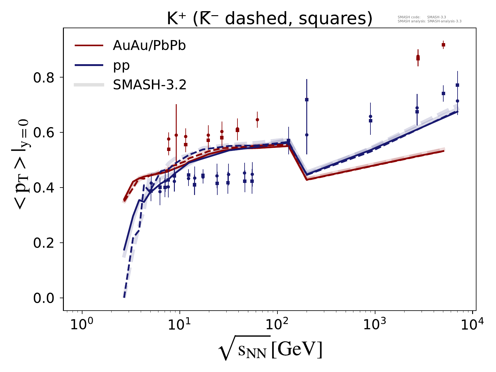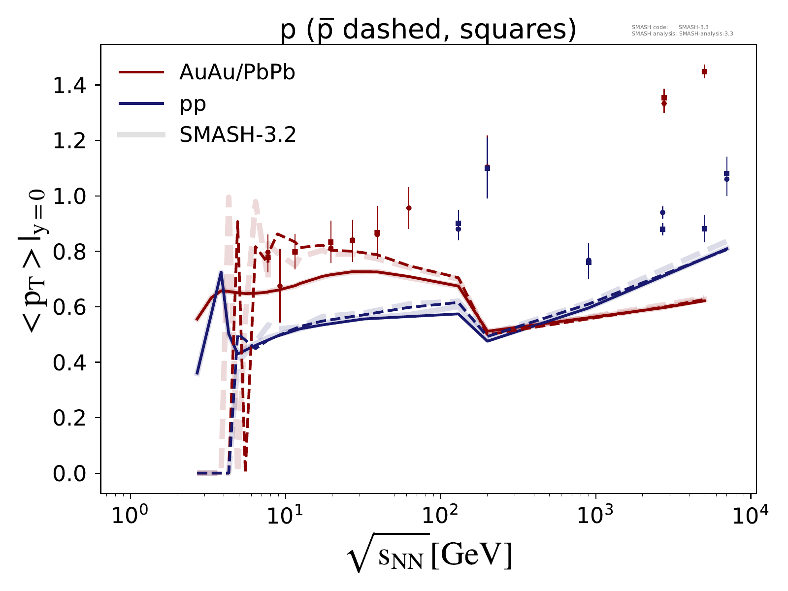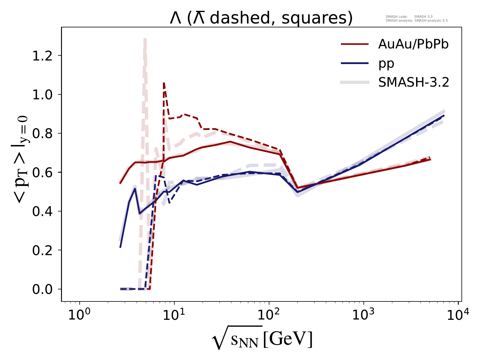 Note: Peak in the region of √sNN ≈ 3 - 5 GeV is due to uncertainties in the transition from resonances to strings.