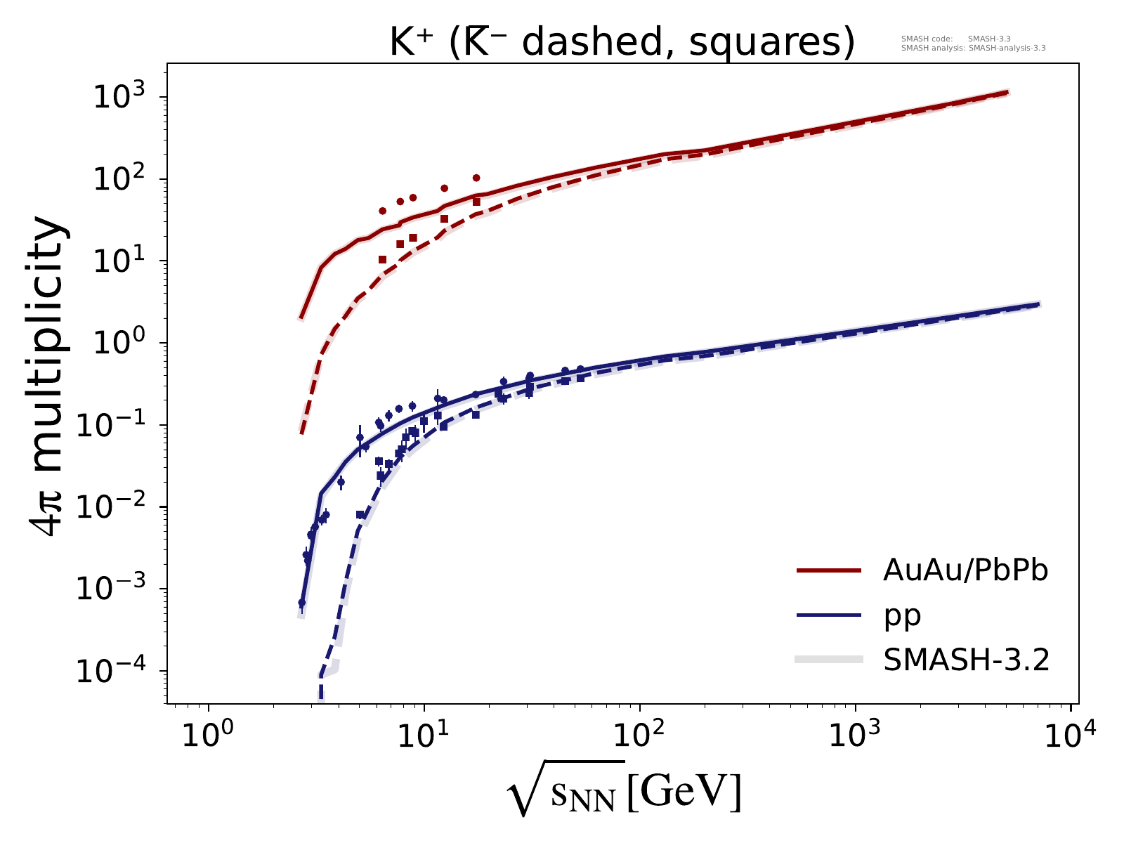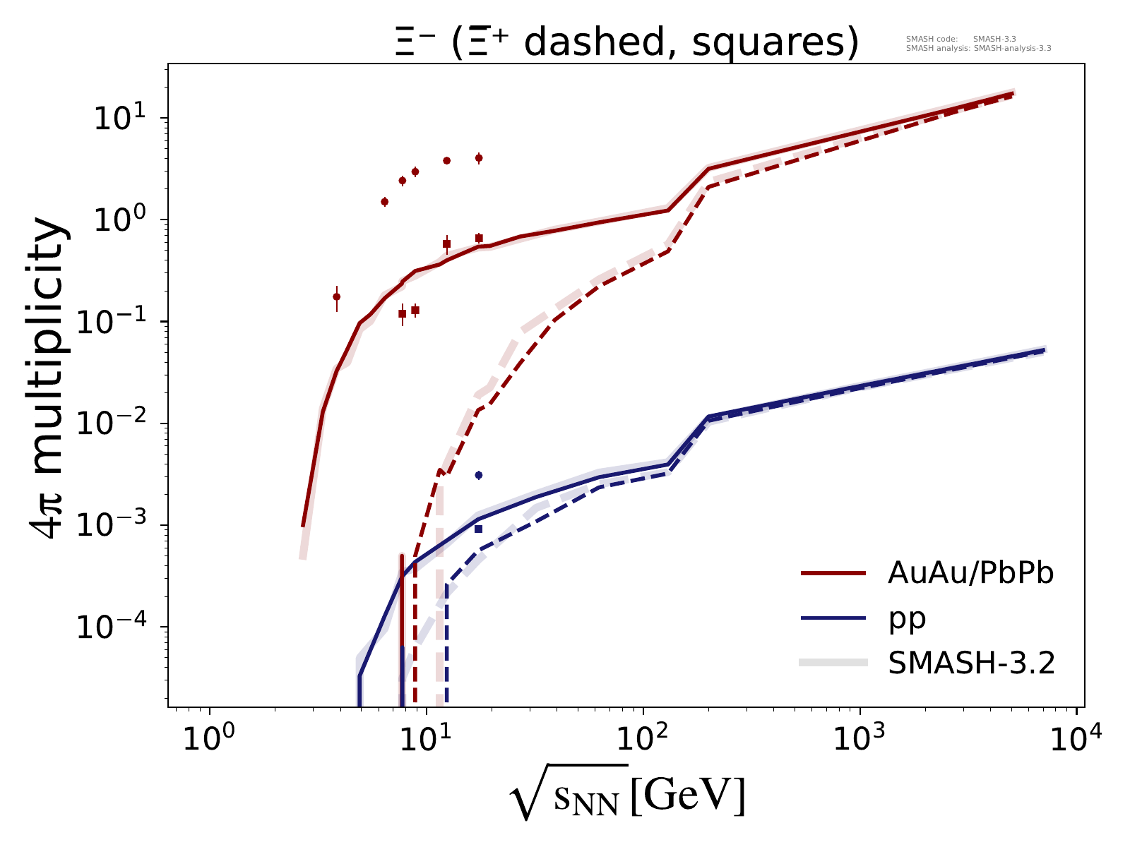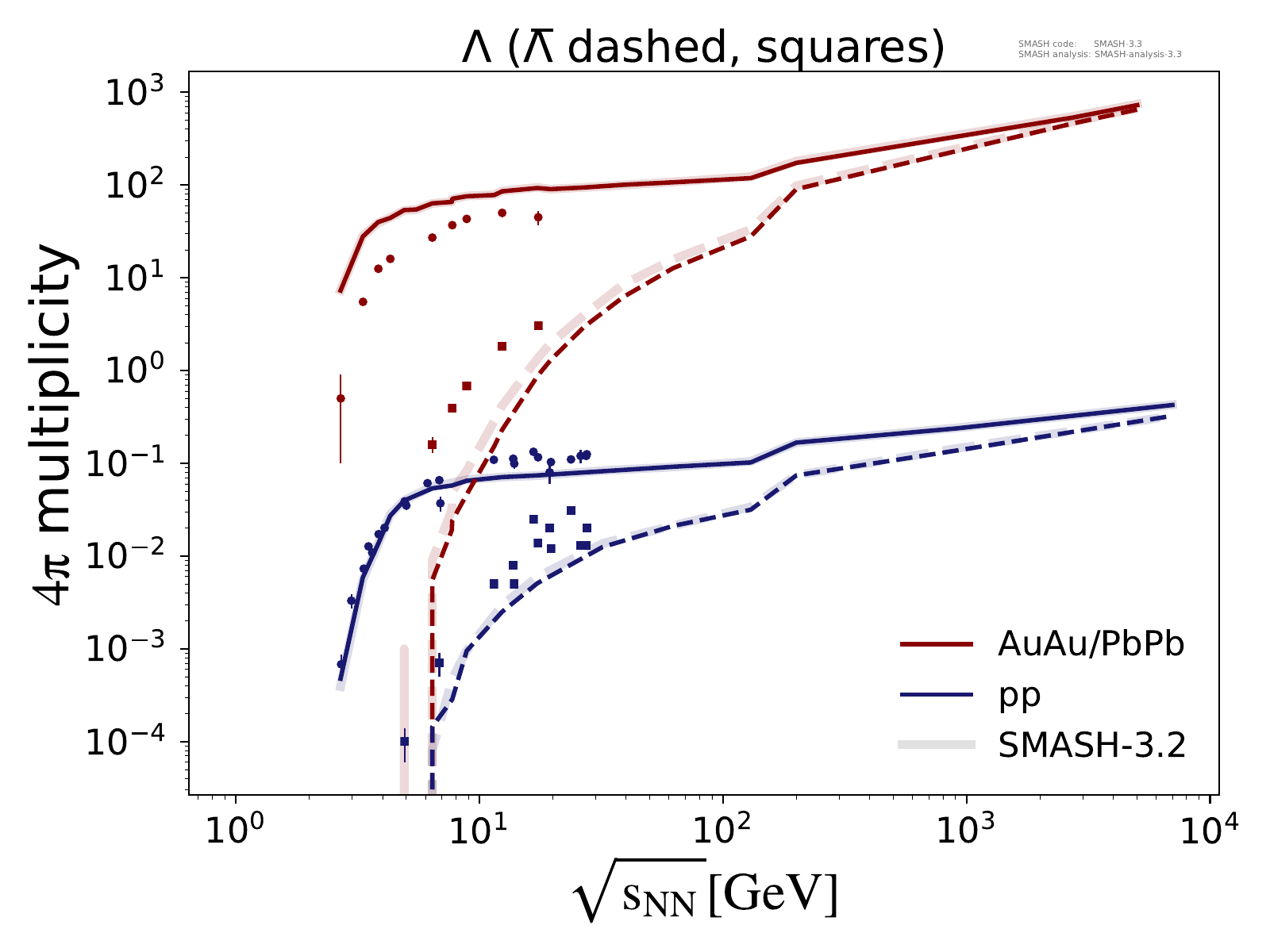 Note: Kink in the region of √sNN ≈ 3 - 5 GeV is due to uncertainties in the transition from resonances to strings. Note: Σ0 contribution is added to Λ in AuAu and PbPb collisions.